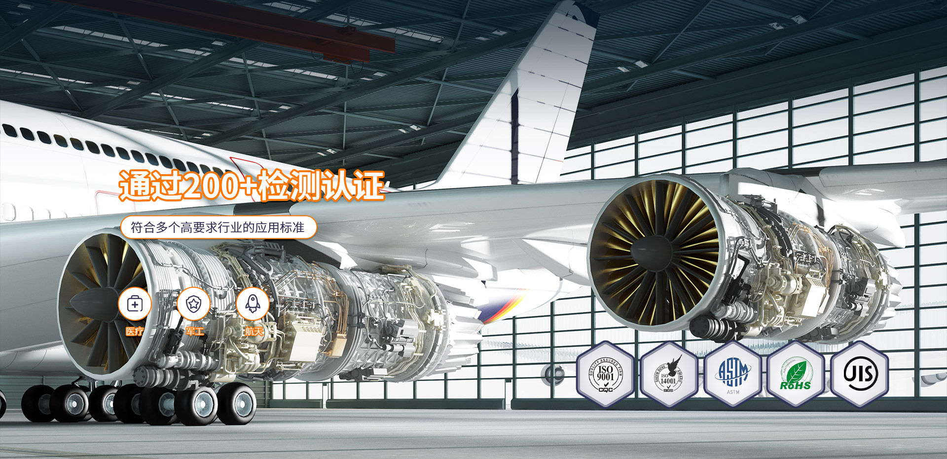 依靠自主建立系統化、規范化、國際化的品控體系,使我們通過軍工、航天、醫療三方質量管理體系認證,并擁有ISO90001、3C、ROHS、ASTM、JIS等各類檢測認證200+項。